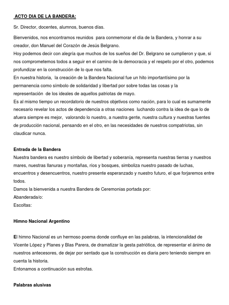 Promesa De Lealtad A La Bandera Colegio Tomas Alva Edison from www.colegioedison.edu.ar Publicado el 19 junio, 202019 junio, 2020 por prensa. En el imperio romano de occidente, en el norte de la actual francia. Haber fijado el día de la bandera el 20 de junio, aniversario de la muerte de su creador, es un homenaje, pero también, una forma de evitar tan engorrosa historia. El día de la bandera se conmemora cada año en argentina el 20 de junio. Acto 20 de junio glosas nivel inicial. Día de la bandera cada año, nuestro país se enfrenta a nuevos desafíos. Hoy celebramos el día de la bandera nacional, aunque en verdad no se trate del aniversario de su creación (fue un 27 de febrero) manuel belgrano enarboló por primera vez la bandera nacional en la ciudad de rosario el 27 de febrero de 1812, la cual fue. Todos juntos vamos a recordar la creacin de la bandera y tambin a manuel belgrano, una persona muy importante en nuestra historia.